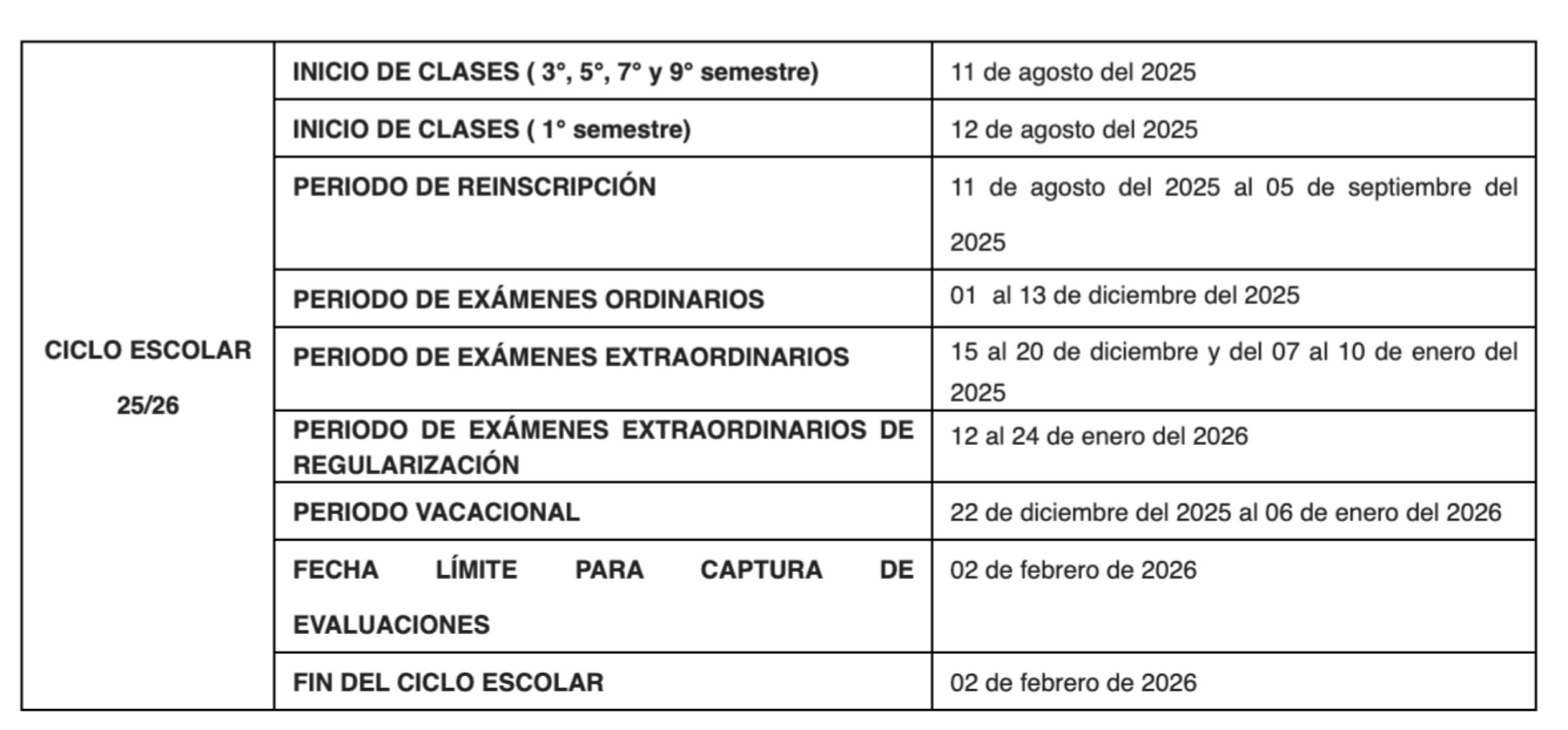 Primer semestre, martes 12 de agosto de 2025, los demás semestres lunes 11 de agosto de 2025.